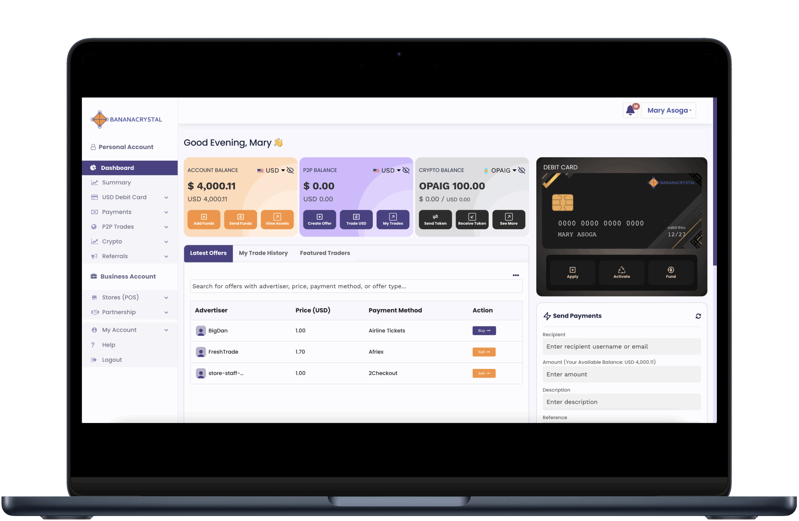 The Broker is a certified trader who is verified by BananaCrystal and goes on the platform to create offers that become advertised on the platform. The fees are then charged to this broker during P2P Trade whether they create a buy/sell offer.