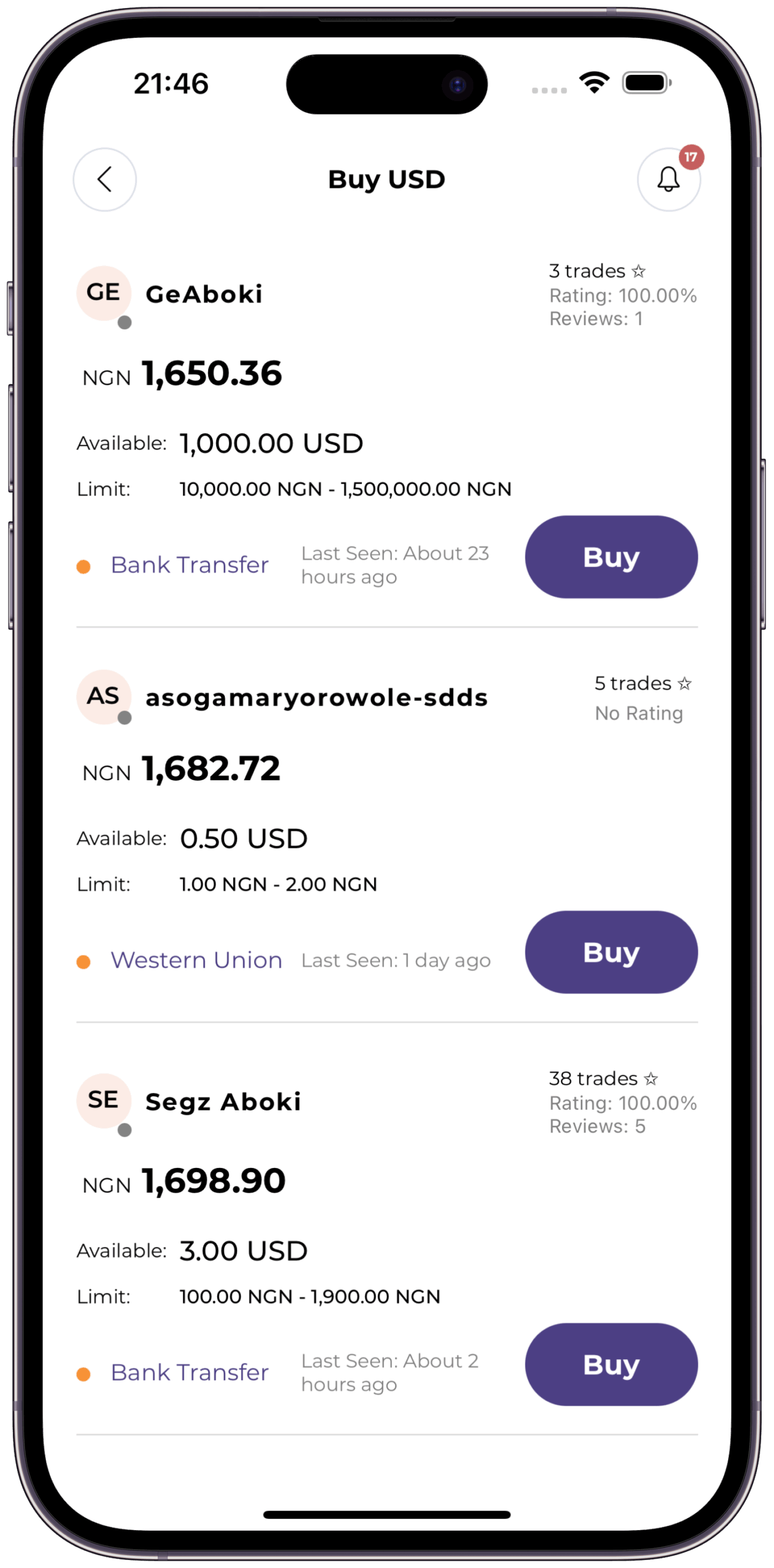 Buy/Sell USD with over 350 payment methods to choose from.
